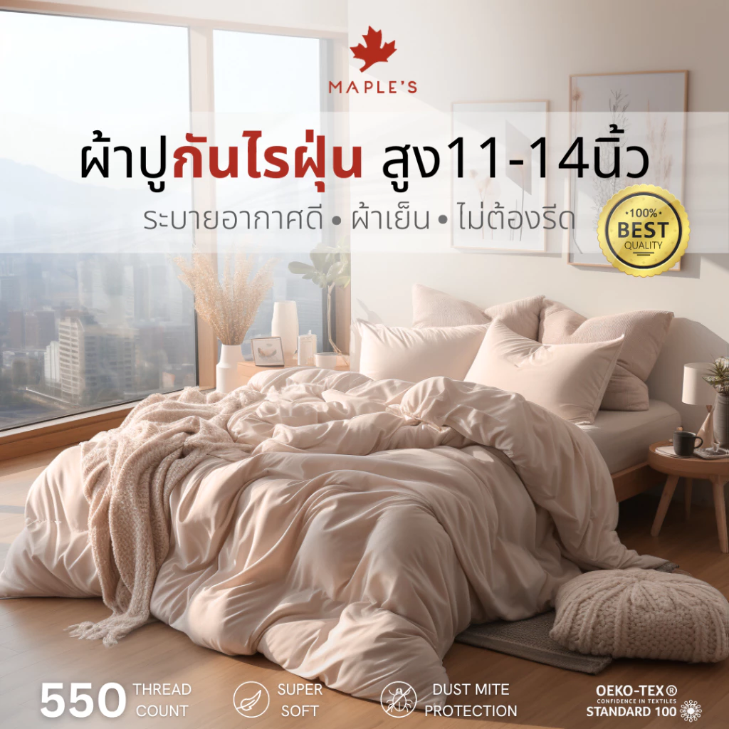 - เหมาะกับคนผิวเเพ้ง่าย ปราศจากสารก่อมะเร็ง และป้องกันการสะสมไรฝุ่น
