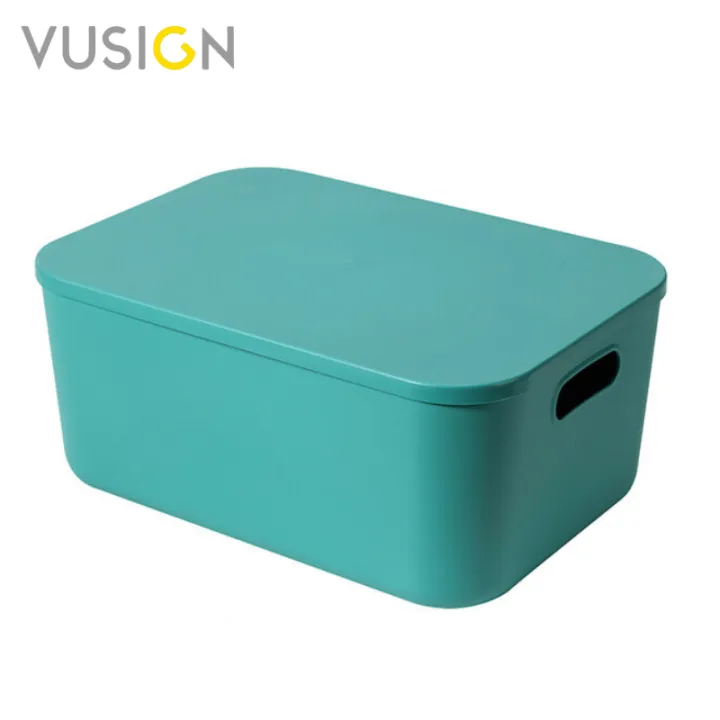 Vusign กล่องพลาสติกพร้อมฝาปิด กล่องเก็บของ ตะกร้าใส่ของ มีหูสำหรับจับ Storage Box