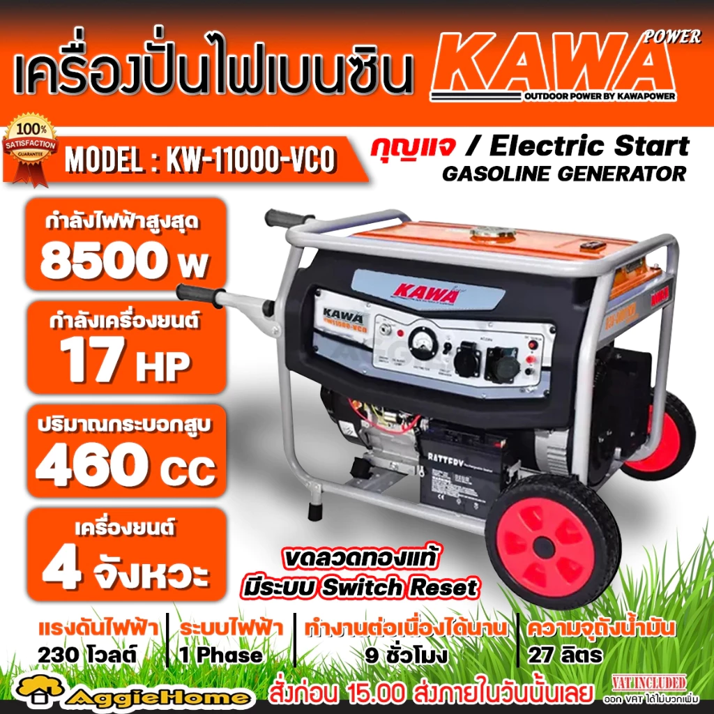 - Kawa เครื่องปั่นไฟ กำลัง 8500 วัตต์ รุ่น KW-11000-VCO