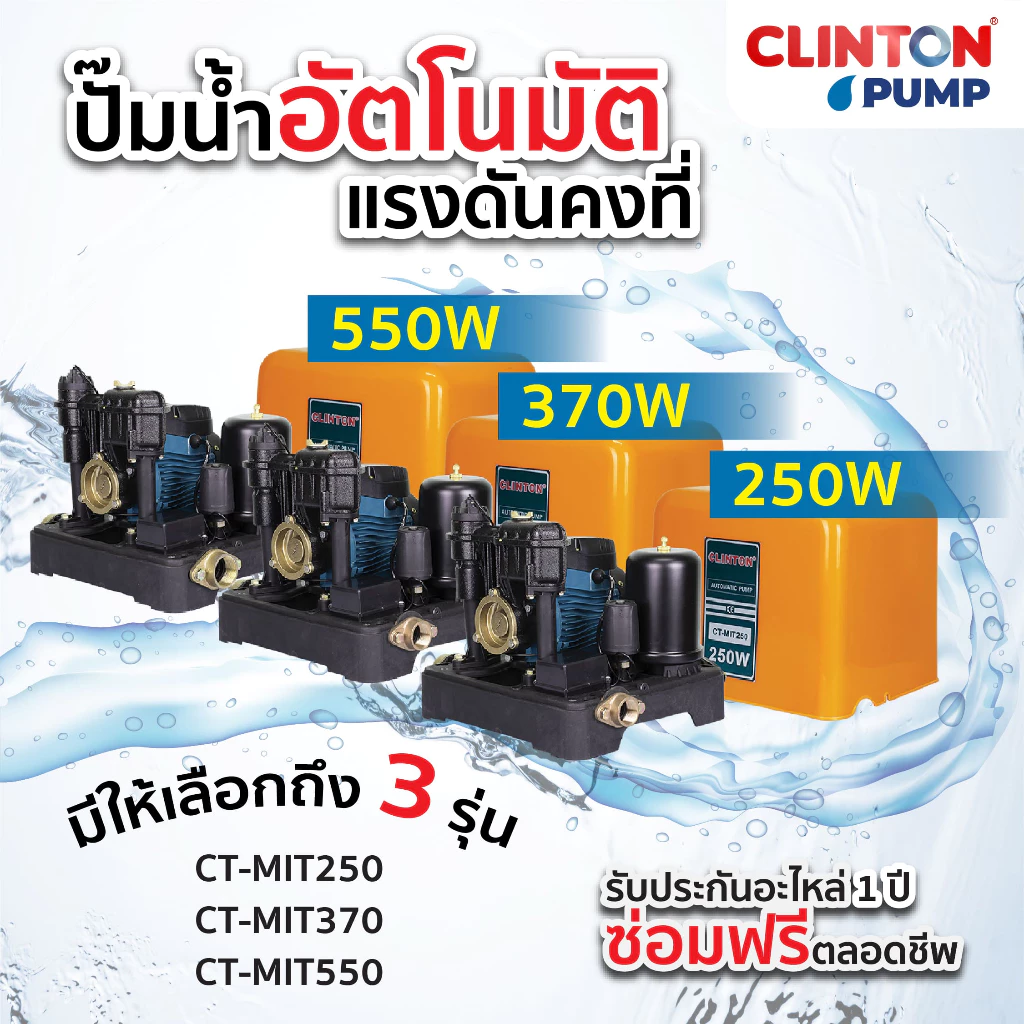 - Clinton ปั๊มน้ำ 370 W รุ่น CT-MIT250, 370, 550