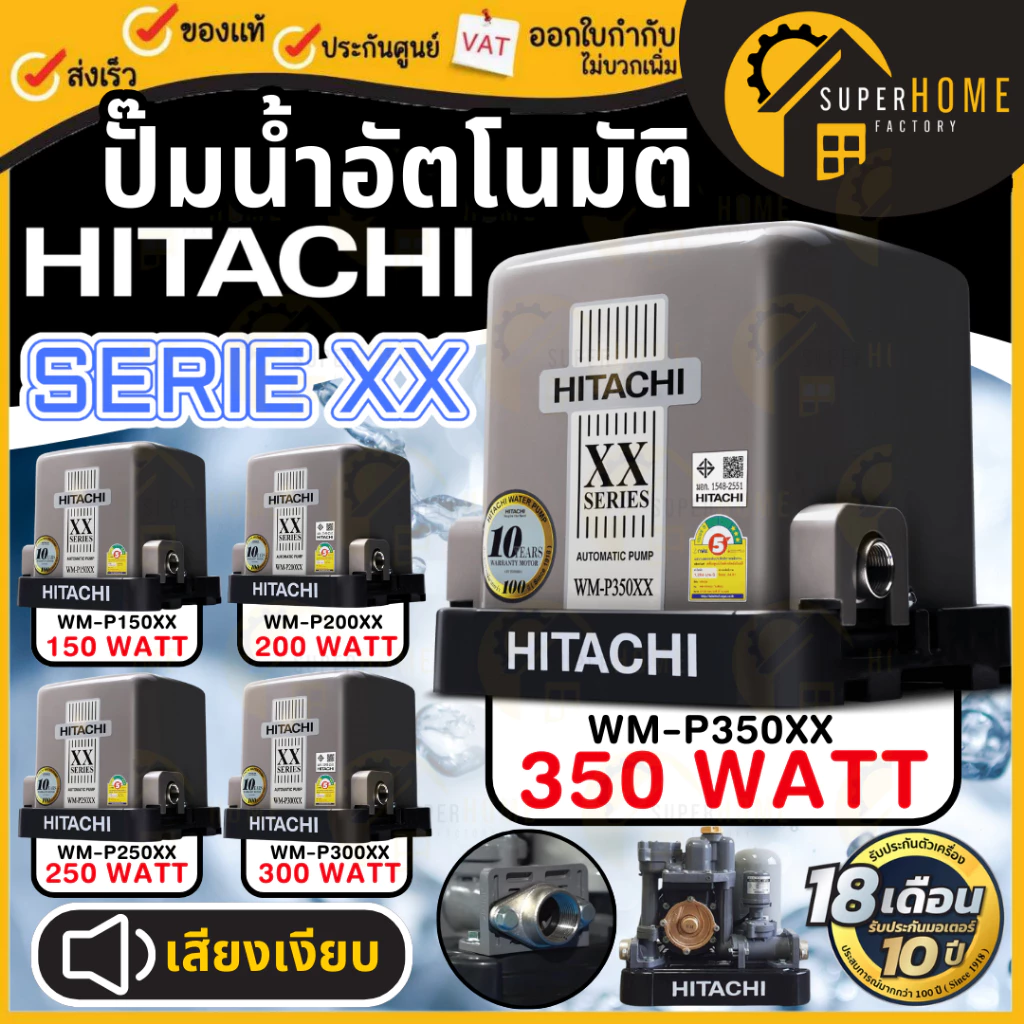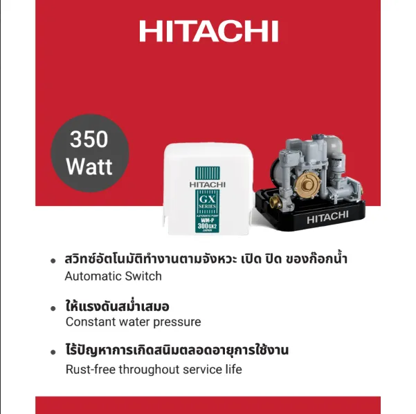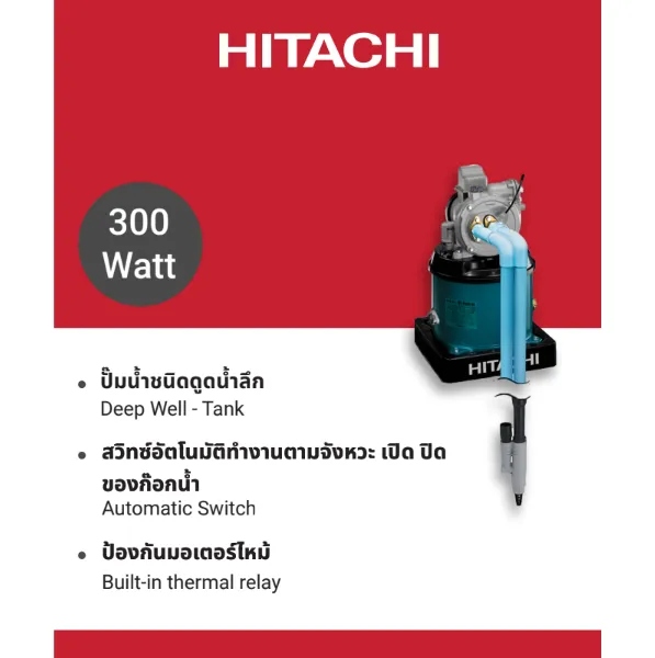 - Hitachi ปั๊มน้ำอัตโนมัติ 250 วัตต์ รุ่น WM-P250XX