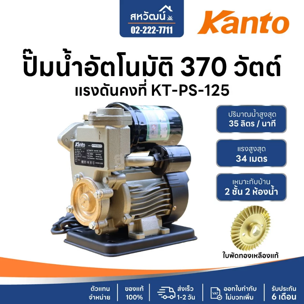 - ปั๊มทำงานอัตโนมัติเมื่อมีการเปิดก๊อกน้ำและหยุดเมื่อปิดก็อกน้ำ