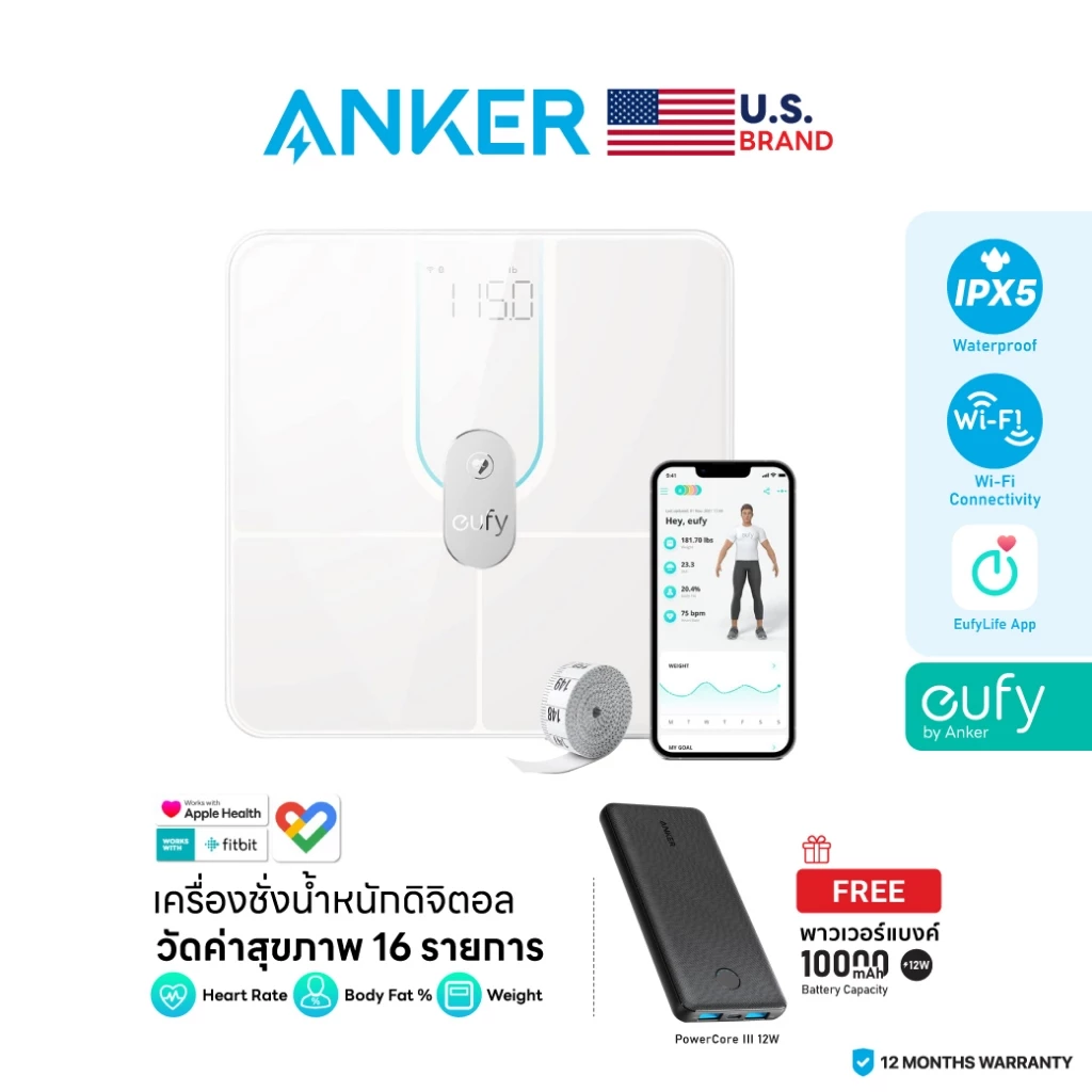 - ใช้งานผ่านแอปพลิเคชัน App Eufylife, Apple Health, Google Fit และ Fitbit
